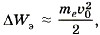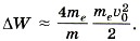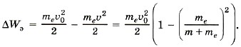 где me и m — массы электрона и молекулы; υ1 и υ2 — их скорости после столкновения. Решая эту систему относительно υ1 и υ2, получаем Энергия, передаваемая молекуле, Из полученного выражения следует, что молекуле передаётся очень маленькая часть первоначальной энергии электрона, так как me << m. При неупругом столкновении выполняется только закон сохранения импульса meυ0 = (m + me)υ, и, таким образом, электрон теряет энергию