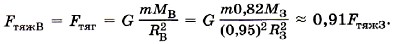 На Луне и других планетах сила тяжести отличается от силы тяжести на Земле, так как изменяется сила тяготения. Сила тяготения, как мы видели, определяется массой планеты и её радиусом. Масса и радиус Луны меньше, чем масса и радиус Земли, поэтому сила тяжести на Луне существенно меньше. Так, на тело массой 1 кг на Луне действует сила тяжести, равная 1,7 Н. Рассчитаем силу тяжести, действующую на тело массой 1 кг, находящееся на поверхности Венеры, при этом пренебрежём влиянием вращения Венеры вокруг собственной оси. Это можно сделать потому, что период вращения Венеры вокруг собственной оси почти в 10 раз больше, чем аналогичный период вращения Земли. Масса Венеры МB = 0,82М3, радиус RB = 0,95 R3. Тогда