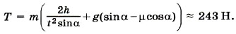 Модуль силы трения скольжения выразим через коэффициент трения р и модуль силы нормальной реакции опоры N: Fтр = μN = μmg cosα. (3) Подставив выражение (3) в уравнение (2), получим mах = mg sin&alpha - μm cosα. Окончательно а = g(sin&alpha - μcosα).
