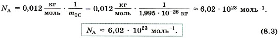 Постоянную Авогадро NA можно определить, разделив массу углерода, взятого в количестве одного моля, на массу одного атома углерода: