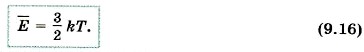 Чем выше температура, тем быстрее движутся молекулы. Таким образом, выдвинутая ранее догадка о связи температуры со средней скоростью молекул получила надёжное обоснование. Соотношение (9.16) между температурой и средней кинетической энергией поступательного движения молекул установлено для идеальных газов. Однако оно оказывается справедливым для любых веществ, у которых движение атомов или молекул подчиняется законам механики Ньютона. Оно верно для жидкостей, а также и для твёрдых тел, где атомы могут лишь колебаться возле положений равновесия в узлах кристаллической решётки. При приближении температуры к абсолютному нулю энергия теплового движения молекул приближается к нулю, т. е. прекращается поступательное тепловое движение молекул.