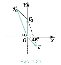 Это сложение скоростей поясняется на рисунке 1.21. Из рисунка видно, что скорость второго поезда относительно первого направлена в сторону, противоположную направлению движения поездов, и второй поезд удаляется от первого. Проекция скорости υ'2 = υ2 - υ1 = -20 км/ч.