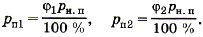 Задача 4. В комнате с закрытыми окнами при температуре 15 °С относительная влажность φ = 10 %. Чему станет равна относительная влажность, если температура в комнате повысится на 10 °С? Давление насыщенного пара при 15 °С рн. п1 = 12,8 мм рт. ст., а при 25 °С рн п2 = 23,8 мм рт. ст. Р е ш е н и е. Так как пар ненасыщенный, то парциальное давление пара изменяется по закону Шарля р1/Т1 = р2/Т2. Из этого уравнения можно определить давление ненасыщенного пара р2 при Т2: р2 = р1Т2/Т1. Относительная влажность при Т1 равна: