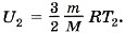 Задача 2. В цилиндре под тяжёлым поршнем находится углекислый газ (М = 0,044 кг/моль) массой m = 0,20 кг. Газ нагревается на ΔТ = 88 К. Какую работу он при этом совершает? Р е ш е н и е. Газ расширяется при некотором постоянном давлении р, которое создаётся атмосферой и поршнем. В этом случае работа газа А' = p(V2 - V1), где V1 и V2 — начальный и конечный объёмы газа. Используя уравнение Менделеева—Клапейрона, выразим произведения pV2 и pV1 через