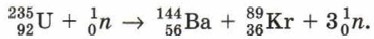 § 34. Ядерные реакции и энергия связи ядер Реакции синтеза и деления ядер (окончание)По этой причине реакции синтеза называют часто термоядерными реакциями. Именно такие реакции и происходят при указанных температурах в недрах звёзд (в том числе и нашего Солнца), являясь основным источником их энергии. На Земле термоядерную реакцию впервые удалось осуществить в водородной бомбе, которая была испытана в 1953 г. в СССР. К счастью, водородную бомбу никогда не применяли в военных действиях. Сегодня учёные многих стран, в том числе и России, активно занимаются «приручением» термоядерной реакции: она могла бы стать практически неисчерпаемым источником энергии. Реакции деленияИз графика зависимости удельной энергии связи от массового числа ядра видно, что наибольшей энергией связи характеризуются ядра с массовыми числами от 50 до 60, то есть ядро железа и близких к нему по массовому числу ядер. Следовательно, для ядер, масса которых больше массы ядра железа, при уменьшении массового числа удельная энергия связи увеличивается. Поэтому при расщеплении тяжёлых ядер с большим массовым числом (это ядра элементов, находящихся ближе к концу таблицы Менделеева) на средние по массовому числу ядра происходит выделение энергии. Расщепление ядра на менее массивные ядра с выделением энергии называют реакцией деления. Она лежит в основе действия атомной бомбы и ядерного реактора. Двумя атомными бомбами, сброшенными с самолётов США, в конце второй мировой войны были полностью разрушены японские города Хиросима и Нагасаки. О работе ядерного реактора мы расскажем в следующем параграфе. Как были открыты реакции деления?В 1938 году немецкие учёные О. Ган и Ф. Штрассман установили, что среди элементов, возникающих при облучении урана нейтронами, присутствует радиоактивный барий. А в следующем году английский физик О. Фриш и австрийский физик Л. Мейтнер теоретически доказали, что при этом происходит реакция деления ядер урана. Дальнейшие исследования подтвердили эти выводы. Одна из реакций деления ядер такова: