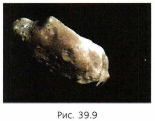 § 39. Природа тел Солнечной системы Малые тела Солнечной системыАстероидыМежду орбитами Марса и Юпитера обращаются миллионы мелких планет и небольших космических тел неправильной формы. Их назвали астероидами1. 1 В переводе с греческого — звездоподобными. Некоторые астероиды даже «обзавелись» астероидами-спутниками: на рисунке 39.9 вы видите астероид Иду длиной около 55 км со своим крошечным спутником (светлая точка в правой части снимка).