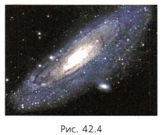 § 42. Галактики Другие галактикиГалактика АндромедыНа ночном небе северного полушария можно увидеть невооружённым глазом крошечное туманное пятнышко в созвездии Андромеды, которое назвали туманностью Андромеды. При наблюдении в телескоп можно заметить очень интересную структуру этой туманности (рис. 42.4).