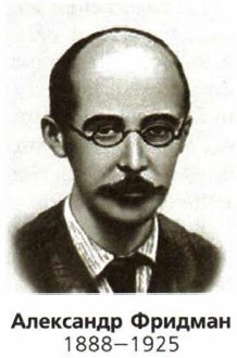 § 43. Происхождение и эволюция Вселенной Большой взрывРазбегание галактик, обнаруженное Хабблом в 1929 году, теоретически предсказал ещё в 1922 году советский учёный А. А. Фридман1. Анализируя уравнения общей теории относительности Эйнштейна, Фридман доказал, что Вселенная не может оставаться стационарной: она должна либо расширяться, либо сжиматься. Фридман выбрал первую возможность и построил модель расширяющейся Вселенной. 1 А. А. Фридман был не только выдающимся математиком и физиком, но и замечательным лётчиком, а также известным метеорологом. Незадолго до смерти он поднялся на аэростате на рекордную для того времени высоту: 7400 метров.