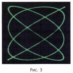 5. Измерьте частоты колебаний маятника по одной и другой осям для полученных вами фигур Лиссажу и найдите отношение частот. 6. Проверьте, выполняется ли соотношение между периодом и длиной нити для колебаний в одной и другой плоскости. Углублённый уровень 7. Рассчитайте, пользуясь формулой для периода колебаний математического маятника, чему должно быть равно отношение длин L и l для того, чтобы получались фигуры Лиссажу, показанные на рисунке 2. 8. Объясните, почему простые фигуры Лиссажу получаются, когда отношение периодов колебаний маятника в одной и другой плоскости равно отношению небольших натуральных чисел. Напишите уравнения зависимости координат х и у от времени для этих случаев. 9. Используя эти уравнения, составьте компьютерную программу, с помощью которой фигуры Лиссажу можно получать на мониторе компьютера. 10. Исследуйте фигуры Лиссажу с помощью школьного осциллографа (рис. 3).