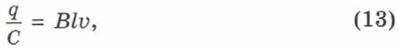 где q и υ — соответственно заряд конденсатора и скорость перемычки в один и тот же момент времени. Появление тока приведёт к появлению действующей на перемычку силы Ампера.