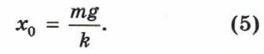 § 13. Более сложные вопросы колебаний Колебания груза, подвешенного на пружинеРассмотрим вертикальные колебания груза массой m, подвешенного на пружине жёсткостью k. Будем считать, что массой пружины можно пренебречь. Направим ось ОХ вертикально вниз, а начало координат совместим с концом пружины, когда пружина не деформирована (рис. 13.1). Удлинение пружины, при котором груз находится в равновесии, то есть когда силу тяжести уравновешивает сила упругости пружины, обозначим х0.