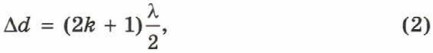 Условие минимумовИнтерференционные минимумы будут наблюдаться в тех точках пространства, куда волны приходят в противофазе (рис. 22.4). Тогда максимум одной волны накладывается на минимум другой, в результате чего волны взаимно ослабляют друг друга (до полного погашения, если их амплитуды равны).