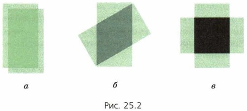 Но если начать поворачивать одну пластинку относительно другой, то через обе пластинки будет проходить всё меньше света (рис. 25.2, б). Когда пластинки повёрнуты друг относительно друга на 90°, свет через них почти не проходит (рис. 25.2, в).