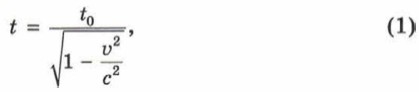 Обратите внимание: в системе отсчёта, связанной с платформой, события А и В произошли в разных точках пространства. Чтобы найти промежуток времени, разделяющий эти события, наблюдатель на платформе должен сравнить показания двух разных часов в своей системе отсчёта, которые находятся в разных точках. Обозначим t0 промежуток времени, измеренный часами пассажира, a t — промежуток времени, разделяющий показания двух разных часов на платформе, мимо которых проносился поезд в те моменты, когда происходили события А и В. Исходя из постулатов теории относительности, можно доказать1, что 1 Доказательство справедливости этой формулы выходит за рамки школьного курса физики.