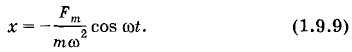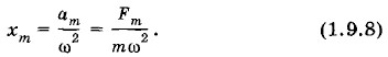 По фазе с колебаниями силы совпадают теперь не колебания координаты, а колебания ускорения. Колебания координаты происходят в противофазе с колебаниями внешней силы. Амплитуда координаты равна: