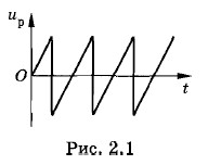Для наблюдения и исследования электрических колебаний сейчас используют электронный осциллограф. В электронной трубке осциллографа узкий пучок электронов попадает на экран, способный светиться при бомбардировке его быстрыми электронами. На горизонтально отклоняющие пластины подается переменное напряжение uр специальной пилообразной формы (рис. 2.1). Его вырабатывает генератор развертки. Это напряжение сравнительно медленно нарастает, а потом очень резко уменьшается. Координата следа электронного луча на экране прямо пропорциональна напряжению на отклоняющих пластинах: у ~ Е ~ uр(t). При линейном возрастании напряжения развертки со временем координата у светящейся точки на экране перемещается в горизонтальном направлении с постоянной скоростью, вычерчивая на экране прямую линию. При быстром возвращении напряжения к начальному луч практически мгновенно возвращается назад. После этого весь процесс повторяется.