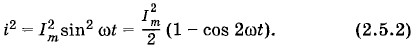Угол отклонения стрелки амперметра, в котором проволочная рамка с током поворачивается в поле постоянного магнита (прибор магнитоэлектрической системы), пропорционален силе тока. Такой амперметр может измерять силу тока только в цепях постоянного тока. При включении его в цепь переменного тока он покажет нуль. Стрелка обладает инертностью и не успевает отклоняться в такт с изменением силы тока. Она будет лишь слегка дрожать на месте. Мощность в цепи постоянного тока на участке сопротивлением R определяется квадратом силы тока. В случае же переменного тока она определяется средним значением квадрата силы тока. Среднее значение квадрата силы тока за период уже не равно нулю, так как квадрат силы тока на протяжении всего периода положителен (рис. 2.11).