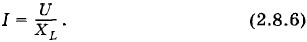Если ввести обозначение ωL = XL (2.8.5) и вместо амплитуд силы тока и напряжения использовать их действующие значения, то получим: