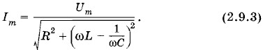Из равенства (2.9.2) можно найти амплитуду силы тока в цепи: