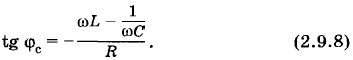 Мгновенное значение силы тока меняется со временем гармонически: i = Im sin (ωt + φc), (2.9.6) где φc — разность фаз между силой тока и напряжением в сети. Она зависит от частоты со и параметров цепи R, L, С. Сдвиг фаз между током и напряжениемСдвиг фаз φс между колебаниями силы тока и напряжения равен по модулю углу φ между векторами