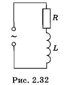 1. Нарисуйте векторную диаграмму для цепи (рис. 2.32). 2. Может ли амплитуда силы тока при резонансе в колебательном контуре с активным сопротивлением R превысить силу постоянного тока в цепи с таким же сопротивлением R и постоянным напряжением, равным амплитуде переменного напряжения?