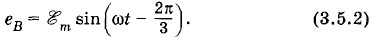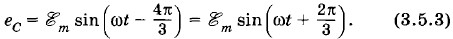 ЭДС третьей фазы, отстающая от ЭДС второй фазы на 2π/3 и от ЭДС первой фазы на 4π/3, записывается так: