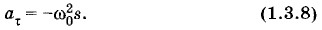 Это уравнение имеет такой же вид, как и уравнение (1.2.6) движения шарика, прикрепленного к пружине. Здесь только вместо проекции ускорения аx стоит тангенциальное ускорение аτ и вместо координаты х — величина s. Да и Важное заключение. Мы пришли к замечательному выводу: уравнения движения, описывающие колебания таких различных систем, как груз на пружине и маятник, одинаковы. Это означает, что движение шарика и колебания маятника происходят одинаковым образом. Смещения груза на пружине и шарика маятника от положения равновесия изменяются со временем по одному и тому же закону, несмотря на то, что силы, вызывающие колебания, имеют различную физическую природу. В первом случае это сила упругости, а во втором — составляющая силы тяжести. Уравнение движения (1.2.6), как и уравнение (1.3.8), выглядит внешне очень просто: ускорение прямо пропорционально координате. Но решить его, т. е. определить, как меняется координата колеблющегося тела с течением времена, не просто. До сих пор в механике мы в основном рассматривали движение с постоянным ускорением. При колебаниях же ускорение меняется со временем, так как меняется сила, действующая на тело.