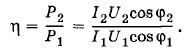 Здесь cos φ2 = 1, так как лампа обладает только активным сопротивлением. Следовательно,