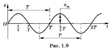 Мы в точности получили уравнение (1.4.1). Следовательно, функция (1.4.2) есть решение исходного уравнения (1.4.1). Конечно, решением исходного уравнения будет также функция: х = хm cos ω0t. График зависимости координаты тела от времени согласно уравнению (1.4.2) представляет собой синусоиду, изображенную на рисунке 1.9.