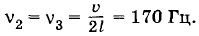 В двух других случаях в трубе укладывается половина длины волны: λ2 = λ3 = 2l. У открытой трубы на концах пучности, а у закрытой, наоборот, узлы смещений. Следовательно,