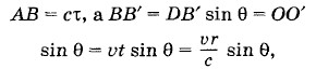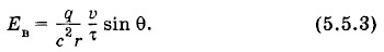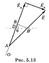 Вследствие того, что υ << с и τ мало, дугу ВВ' можно рассматривать как отрезок прямой (см. рис. 5.11). Прямоугольный треугольник векторов напряженностей