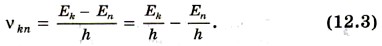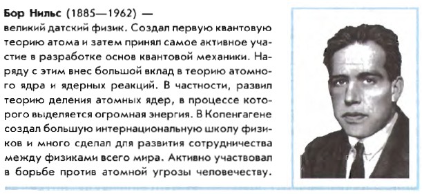 Глава 12. Атомная физика § 94. Квантовые постулаты Бора. Модель атома водорода по БоруВыход из крайне затруднительного положения в теории атома был найден в 1913 г. датским физиком Нильсом Бором на пути дальнейшего развития квантовых представлений о процессах в природе. Эйнштейн оценивал проделанную Бором работу «как высшую музыкальность в области мысли», всегда его поражавшую. Основываясь на разрозненных опытных фактах, Бор благодаря гениальной интуиции правильно предугадал путь развития теории атома. Постулаты БораПоследовательной теории атома Бор, однако, не разработал. Он в виде постулатов сформулировал основные положения новой теории. Причем и законы классической физики не отвергались им безоговорочно. Новые постулаты, скорее, налагали лишь некоторые ограничения на рассматриваемые классической физикой движения. Успех теории Бора был тем не менее поразительным, и всем ученым стало ясно, что Бор нашел правильный путь развития теории. Этот путь привел впоследствии к созданию стройной теории движения микрочастиц — квантовой механики. Первый постулат Бора гласит: существуют особые, станционарные состояния атома, находясь в которых атом не излучает энергию, при этом электроны в атоме движутся с укорением. Каждому стационарному состоянию соответствует определенная энергия Еn. Согласно второму постулату Бора излучение света происходит при переходе атома из стационарного состояния с большей энергией Ek в стационарное состояние с меньшей энергией Еn. Энергия излученного фотона равна разности энергий стационарных состояний: hvkn = Еk - Еn (12.2) Отсюда частоту излучения можно выразить так: