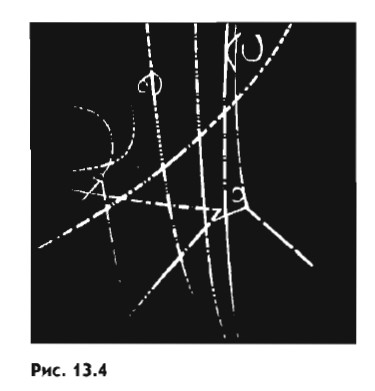 Глава 13. Физика атомного ядра § 97. Методы наблюдения и регистрации элементарных частиц (окончание)Пузырьковая камераВ 1952 г. американским ученым Д. Глейзером было предложено использовать для обнаружения треков частиц перегретую жидкость. В такой жидкости на ионах (центрах парообразования), образующихся при движении быстрой заряженной частицы, появляются пузырьки пара, дающие видимый трек. Камеры данного типа были названы пузырьковыми. В исходном состоянии жидкость в камере находится под высоким давлением, предохраняющим ее от закипания, несмотря на то, что температура жидкости несколько выше температуры кипения при атмосферном давлении. При резком понижении давления жидкость оказывается перегретой, и в течение небольшого времени она будет находиться в неустойчивом состоянии. Заряженные частицы, пролетающие именно в это время, вызывают появление треков, состоящих из пузырьков пара (рис. 13.4). В качестве жидкости используются главным образом жидкий водород и пропан. Длительность рабочего цикла пузырьковой камеры невелика — около 0,1 с.