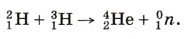 Глава 13. Физика атомного ядра § 110. Термоядерные реакцииМасса покоя ядра урана больше суммы масс покоя осколков, на которые делится ядро. Для легких ядер дело обстоит как раз наоборот. Так, масса покоя ядра гелия значительно меньше суммы масс покоя двух ядер тяжелого водорода, на которые можно разделить ядро гелия. Это означает, что при слиянии легких ядер масса покоя уменьшается и, следовательно, должна выделяться значительная энергия. Подобного рода реакции слияния легких ядер могут протекать только при очень высоких температурах. Поэтому они называются термоядерными. Термоядерные реакции — это реакции слияния легких ядер при очень высокой температуре. Для слияния ядер необходимо, чтобы они сблизились на расстояние около 10-12 см, т. е. чтобы они попали в сферу действия ядерных сил. Этому сближению препятствует кулоновское отталкивание ядер, которое может быть преодолено лишь за счет большой кинетической энергии теплового движения ядер. Энергия, которая выделяется при термоядерных реакциях в расчете на один нуклон, превышает удельную энергию, выделяющуюся при цепных реакциях деления ядер. Так, при слиянии тяжелого водорода — дейтерия — со сверхтяжелым изотопом водорода — тритием — выделяется около 3,5 МэВ на один нуклон. При делении же урана выделяется примерно 1 МэВ энергии на один нуклон. Термоядерные реакции играют большую роль в эволюции Вселенной. Энергия излучения Солнца и звезд имеет термоядерное происхождение. По современным представлениям, на ранней стадии развития звезда в основном состоит из водорода. Температура внутри звезды столь велика, что в ней протекают реакции слияния ядер водорода с образованием гелия. Затем при слиянии ядер гелия образуются и более тяжелые элементы. Термоядерные реакции играют решающую роль в эволюции химического состава вещества во Вселенной. Все эти реакции сопровождаются выделением энергии, обеспечивающей излучение света звездами на протяжении миллиардов лет. Осуществление управляемых термоядерных реакций на Земле сулит человечеству новый, практически неисчерпаемый источник энергии. Наиболее перспективной в этом отношении реакцией является реакция слияния дейтерия с тритием: