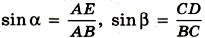 Через точку В границы раздела сред воздух — стекло проводят перпендикуляр к границе, отмечают углы падения α и преломления β. Далее с помощью циркуля проводят окружность с центром в точке В и строят прямоугольные треугольники АВЕ и CBD. Так как
