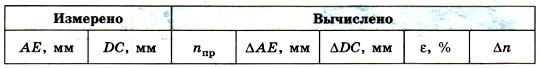 Длины отрезков АЕ и DC измеряют по миллиметровой бумаге или с помощью линейки. При этом в обоих случаях инструментальную погрешность можно считать равной 1 мм. Погрешность отсчета надо взять также равной 1 мм для учета неточности в расположении линейки относительно края светового пучка. Максимальную относительную погрешность ε измерения показателя преломления определяют по формуле