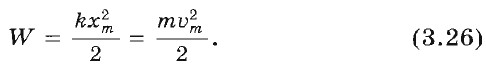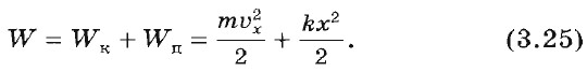 При движении шарика влево деформация пружины становится меньше, и потенциальная энергия системы уменьшается. Но одновременно увеличивается скорость и, следовательно, возрастает кинетическая энергия. В момент прохождения шариком положения равновесия потенциальная энергия колебательной системы становится равной нулю (Wп = 0 при х = 0). Кинетическая же энергия достигает максимума. После прохождения положения равновесия скорость шарика начинает уменьшаться. Следовательно, уменьшается и кинетическая энергия. Потенциальная же энергия системы снова увеличивается. В крайней левой точке она достигает максимума, а кинетическая энергия становится равной нулю. Таким образом, при колебаниях периодически происходит переход потенциальной энергии в кинетическую и обратно. Нетрудно проследить за тем, что такие же превращения механической энергии из одного ее вида в другой происходят и в случае математического маятника. Полная механическая энергия при колебаниях тела, прикрепленного к пружине, равна сумме кинетической и потенциальной энергий колебательной системы: