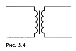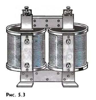 Глава 5. Производство, передача и использование электрической энергии § 38. ТрансформаторыЭлектрический ток никогда не получил бы такого широкого применения, если бы его нельзя было преобразовывать почти без потерь энергии. Назначение трансформаторовЭДС мощных генераторов электростанций довольно велика. Между тем в практике чаще всего нужно не слишком высокое напряжение. Преобразование переменного тока, при котором напряжение увеличивается или уменьшается в несколько раз практически без потери мощности, осуществляется с помощью трансформаторов. Впервые трансформаторы были использованы в 1878 г. русским ученым П. Н. Яблочковым для питания изобретенных им электрических свечей — нового в то время источника света. Устройство трансформатораТрансформатор состоит из замкнутого стального сердечника, собранного из пластин, на который надеты две (иногда и более) катушки с проволочными обмотками (рис. 5.3). Одна из обмоток, называемая первичной, подключается к источнику переменного напряжения. Другая обмотка, к которой присоединяют нагрузку, т. е. приборы и устройства, потребляющие электроэнергию, называется вторичной. Условное обозначение трансформатора приведено на рисунке 5.4.