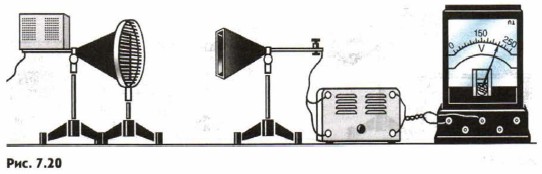 Поляризацию наблюдают, помещая между генератором и приемником решетку из параллельных металлических стержней (рис. 7.20). Решетку располагают так, чтобы стержни были горизонтальными или вертикальными. При одном из этих положений, когда электрический вектор параллелен стержням, в них возбуждаются токи, в результате чего решетка отражает волны, подобно сплошной металлической пластине. Когда же вектор Электромагнитные волны обладают следующими свойствами. Они поглощаются, отражаются, испытывают преломление, поляризуются. Последнее свойство свидетельствует о поперечности этих волн. Вопросы к параграфу 1. Перечислите известные вам свойства электромагнитных волн. 2. Какая волна называется поляризованной?