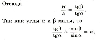 где n — показатель преломления воды. Следовательно, Истинная глубина водоема больше кажущейся в n = 1,3 раза.