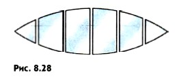 Обычно линзы изготавливают из стекла. Выпуклые линзы являются собирающими. Любую из них схематично можно себе представить как совокупность стеклянных призм (рис. 8.28). В воздухе каждая призма отклоняет лучи к основанию. Все лучи, идущие через линзу, отклоняются в сторону ее главной оптической оси. Точка, в которой пересекаются после преломления в собирающей линзе лучи, падающие на нее параллельно главной оптической оси, называется главным фокусом линзы. Эту точку обозначают буквой F (рис. 8.29, а). Пучки, параллельные главной оптической оси, можно направить на линзу и с противоположной стороны. Точка, в которой они сойдутся, пройдя линзу, будет другим главным фокусом (рис. 8.29, б).