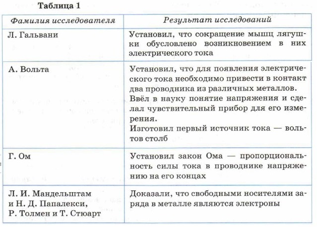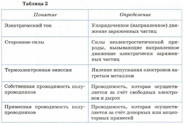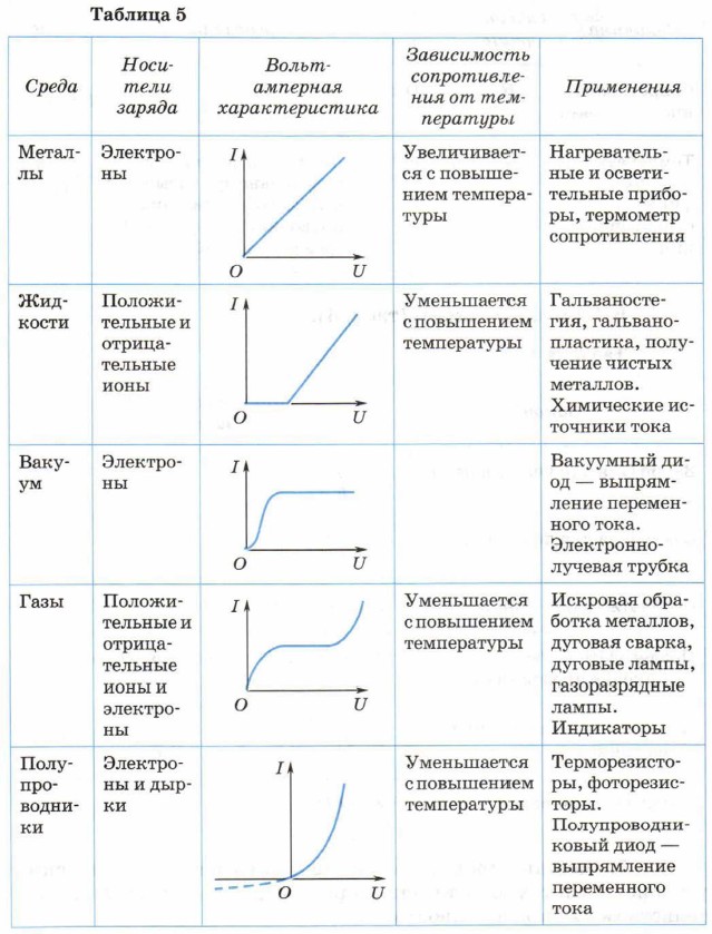 7. Законы проводимости применяются в технических устройствах и технологических процессах, что является доказательством их справедливости. 8. Электрический ток в различных средах (табл. 5).