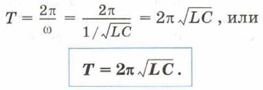 Таким образом, собственная частота свободных электромагнитных колебаний определяется параметрами колебательного контура — ёмкостью конденсатора и индуктивностью катушки. Для периода свободных электромагнитных колебаний можно записать: