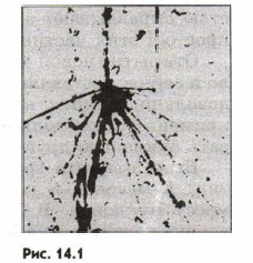 На рисунке 14.1 вы видите результат столкновения ядра углерода, имевшего энергию 60 млрд эВ (жирная верхняя линия), с ядром серебра фотоэмульсии. Ядро раскалывается на осколки, разлетающиеся в разные стороны. Одновременно рождается много новых элементарных частиц — пионов. Подобные реакции при столкновениях релятивистских ядер, полученных в ускорителе, впервые в мире осуществлены в лаборатории высоких энергий Объединенного института ядерных исследований в г. Дубне под руководством академика А. М. Балдина. Лишенные электронной оболочки ядра были получены путем ионизации атомов углерода лазерным лучом. Возможно, конечно, что при столкновениях частиц с недоступной пока нам энергией будут рождаться и какие-то новые, еще неизвестные частицы. Но сути дела это не изменит. Рождаемые при столкновениях новые частицы никак нельзя рассматривать как составные части частиц-«родителей». Ведь «дочерние» частицы, если их ускорить, могут, не изменив своей природы, породить, в свою очередь, при столкновениях сразу несколько таких же в точности частиц, какими были их «родители», да еще и множество других частиц. Итак, по современным представлениям, элементарные частицы — это первичные, неразложимые далее частицы, из которых построена вся материя. Однако неделимость элементарных частиц не означает, что у них отсутствует внутренняя структура. Этап третий. От гипотезы о кварках (1964 г.) до наших дней. (Большинство элементарных частиц имеет сложную структуру.) В 60-е гг. возникли сомнения в том, что все частицы, называемые сейчас элементарными, полностью оправдывают это название. Основание для сомнений простое: этих частиц очень много. Открытие новой элементарной частицы всегда составляло и сейчас составляет выдающийся триумф науки. Но уже довольно давно к каждому очередному триумфу начала примешиваться доля беспокойства. Триумфы стали следовать буквально друг за другом. Была открыта группа так называемых странных частиц: K-мезонов и гиперонов с массами, превышающими массу нуклонов. В 70-е гг. к ним прибавилась большая группа частиц с еще большими массами, названных очарованными. Кроме того, были открыты короткоживущие частицы с временем жизни порядка 10-22—10-23 с. Эти частицы были названы резонансами, и их число перевалило за двести. Вот тогда-то (в 1964 г.) М. Гелл-Манном и Дж. Цвейгом была предложена модель, согласно которой все частицы, участвующие в сильных (ядерных) взаимодействиях, — адроны — построены из более фундаментальных (или первичных) частиц — кварков. Кварки имеют дробный электрический заряд В настоящее время в реальности кварков никто не сомневается, хотя в свободном состоянии они не обнаружены и, вероятно, не будут обнаружены никогда. Существование кварков доказывают опыты по рассеянию электронов очень высокой энергии на протонах и нейтронах. Число различных кварков равно шести. Кварки, насколько сейчас известно, лишены внутренней структуры и в этом смысле могут считаться истинно элементарными. Легкие частицы, не участвующие в сильных взаимодействиях, называются лептонами. Их тоже шесть, как и кварков (электрон, три вида нейтрино и еще две частицы — мюон и тау-лептон с массами, значительно большими массы электрона). Кварки и лептоны — истинно элементарные частицы.