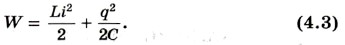 где i — сила переменного тока; L — индуктивность катушки. Полная энергия W электромагнитного поля контура равна сумме энергий его магнитного и электрического полей: