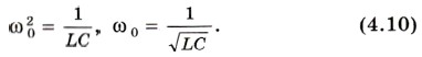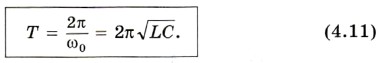 Теперь вы в полной мере можете оценить значение тех усилий, которые были затрачены для изучения колебаний шарика на пружине и математического маятника. Ведь уравнение (4.9) ничем, кроме обозначений, не отличается от уравнения (3.11), описывающего колебания шарика на пружине. При замене в уравнении (3.11) х на q, х" на q", k на 1/С и m на L мы в точности получим уравнение (4.9). Но уравнение (3.11) было уже решено выше. Поэтому, зная формулу, описывающую колебания пружинного маятника, мы сразу же можем записать формулу для описания электрических колебаний в контуре. Формула Томсона. В уравнении (3.11) коэффициент