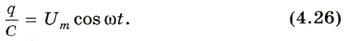 Заряд конденсатора меняется по гармоническому закону: q = CUm cos ωt. Сила тока, представляющая собой производную заряда по времени, равна: