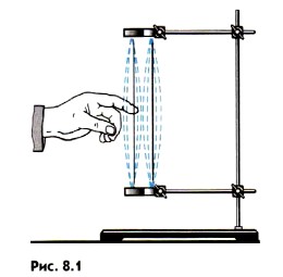 Можно, например, заставить звучать струну, ударив по ней, а можно поместить около нее такую же струну, возбудив в ней колебания (рис. 8.1). Тогда звуковые волны второй струны, дойдя до первой, вызовут ее звучание.