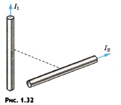 1. Используя правило буравчика и правило левой руки, покажите, что токи, направленные параллельно, притягиваются, а направленные противоположно — отталкиваются. 2. По двум скрещивающимся под прямым углом прямолинейным проводникам пропускают токи. Силы токов I1 и I2 (рис. 1.32). Как будет изменяться расположение проводников относительно друг друга? 3. Проводник длиной l = 0,15 м перпендикулярен вектору магнитной индукции однородного магнитного поля, модуль которого В = 0,4 Тл. Сила тока в проводнике I = 8 А. Определите работу силы Ампера, которая была совершена при перемещении проводника на 0,025 м по направлению действия этой силы. 4. Определите радиус окружности и период обращения электрона в однородном магнитном поле с индукцией В = 0,01 Тл. Скорость электрона перпендикулярна вектору магнитной индукции и равна 106 м/с. Краткие итоги главы 11. Взаимодействие электрических токов осуществляется посредством магнитного поля. Основной характеристикой магнитного поля является вектор магнитной