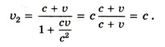 При υ1 = с скорость υ2 также равна с — в соответствии со вторым постулатом теории относительности. Действительно,